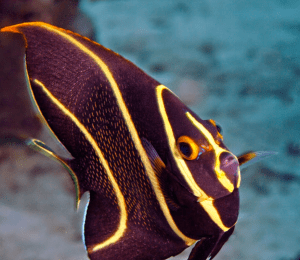 La zone des 10 mètres, d’abord, où nous trouvons une concentration de poissons anges français, caraïbes et royaux.