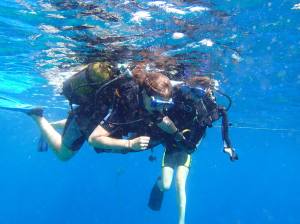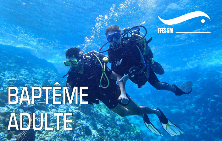 Le baptême est un moment fort pour celle ou celui qui découvre pour la première fois le plaisir de respirer sous l’eau, comme un poisson ! Ce moment magique reste ancré dans la mémoire de tous les plongeurs, et nous y attachons beaucoup d’importance. Car c’est souvent cette première immersion qui déclenche la passion qui vous poursuivra peut-être pour la vie. Le baptême doit donc se dérouler dans des conditions parfaites : instructeur doux et pédagogique, confort du matériel, clarté et température de l’eau, et jolis fonds. Car même dans très peu d’eau, il y a déjà une vie très colorée à découvrir dans le silence de vos premières bulles.