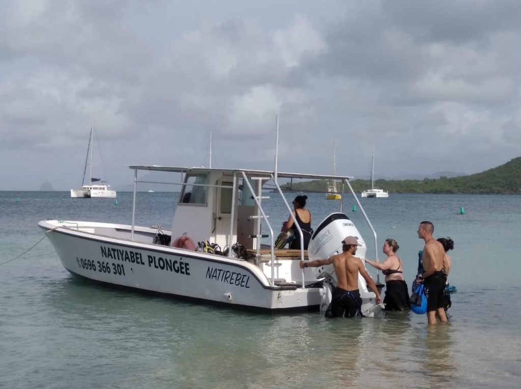 Natirebel est une vedette de 9,60m pouvant embarquer 16 personnes équipées, mais nous favorisons les petits groupes et embarquons 8 plongeurs max sur le bateau, le matin. Elle dispose d’un grand espace couvert à l’arrière. Le bateau est équipé d’un moteur 300CV, GPS et VHF. Il y a à bord, en plus de la sécurité spécifique plongée, une bouilloire, une douche, une glacière. Le club dispose d’une cinquantaine bouteilles (6 à 18 litres), pour la plupart en Alu, et de deux compresseurs. Les détendeurs, combinaisons et petit équipement sont renouvelés régulièrement. Le matériel du club est sélectionné pour ses performances auprès de fournisseurs de grandes marques. Nous tenons à ce qu’il soit adapté au plongeur et accordons beaucoup d’importance à l’entretien et la désinfection après chaque plongée de celui-ci après chaque plongée.